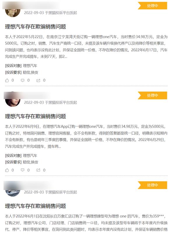 但许多老车主却纷纷对理想汽车进行投诉,投诉原因为“存在欺骗销售问题”。