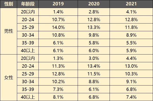 照猫眼购票数据显示,近三年的主力电影用户以20-34岁之间的成年人为主,其中20-24岁占比最多,其次是25-29岁。一个明显的变化,是25-29岁的初阶打工人群体购票逐年减少,而20岁以内的青少年逐年增多。