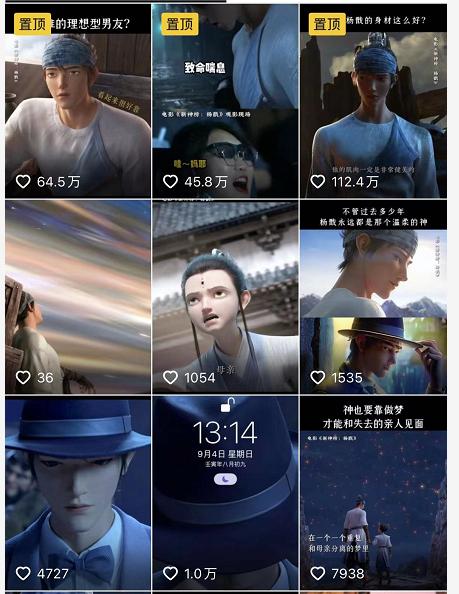 在形式上,官方MV和预告片也不再是唯一选择,最近的《封神榜:杨戬》就做了同人物但不同主题的抖音小剧场,结合“理想男友”“好身材”“帅哥”几个大众话题在抖音上积累了近800万点赞。也算是扬长避短了。