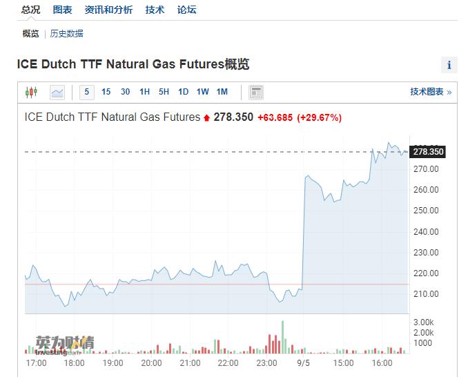 今日欧盟天然气价格一度跳涨31%,欧股集体低开,欧洲斯托克50指数跌2.35%,德国DAX指数跌2.82%,意大利富时MIB指数跌2.37%;
