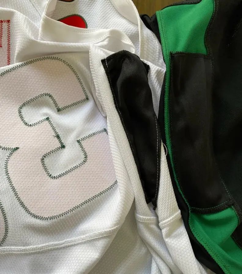 当然,最初球员麦克风还是夹在球衣的中间位置,此后则有了更便捷的形态。2010年,阿迪达斯推出了「Revolution 30」球衣,摒弃了原有的厚重材料,应用了Climacool材质面料,改用透气网布制作球衣号码,有效减轻球衣自重,增强穿着舒适感,并且在肩膀处开辟了一个竖条口袋用来装球员麦克风,采用更灵巧的话筒,而耐克在2017年接手NBA球衣后沿用了这一设计。