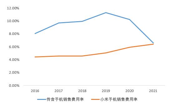 图:传音&小米手机销售费用率比较,来源:各公司年报
