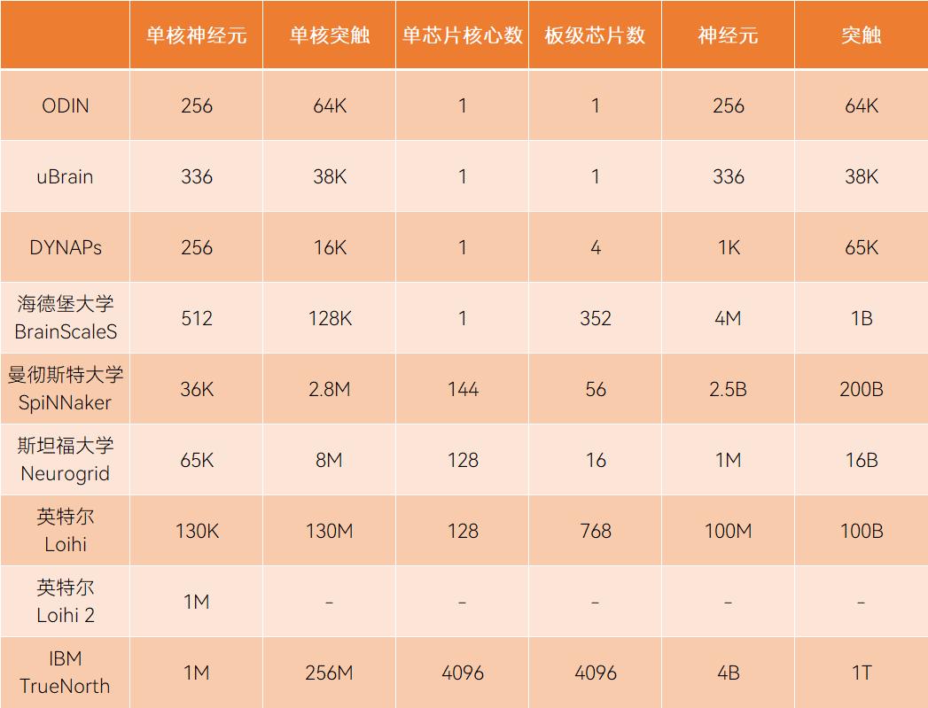 参考资料丨IEEE[33]目前已知神经形态芯片详细参数对比,制表丨果壳硬科技