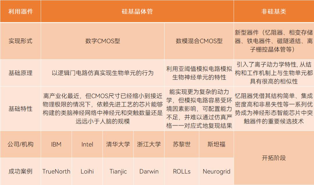 神经形态芯片的三种实现形式,制表丨果壳硬科技