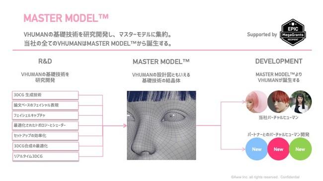 Aww公司针对虚拟人制作,还开发了独家引擎MASTER MODEL,此引擎集合了虚拟人制作所需基础技术,并能模拟真实衣料质感。此外,Aww还提供与AI、XR技术关联的新兴领域业务。