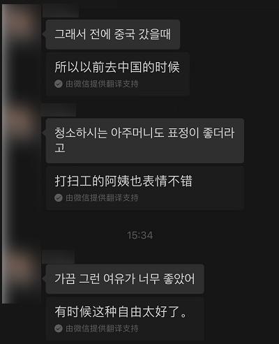 这位韩国友人曾经在中国呆过两年,他说 “ 我看到在中国,哪怕是扫地的阿姨,脸上都能洋溢着笑容,我很羡慕你们能够拥有这样的「 自由 」”。