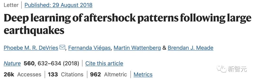 在2018年,来自谷歌和哈佛大学的研究人员,曾在一篇发表在Nature的论文中,展示了如何用深度学习预测余震位置。