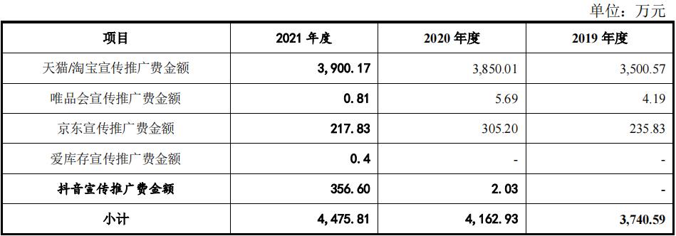 2019-2021年嘉曼费用服饰电商平台推广情况