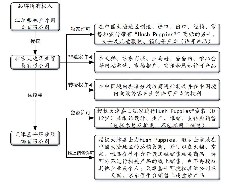 招股书显示,授权经营品牌是嘉曼服饰最主要的收入来源,2019年至2021年在主营业务的收入占比分别为56.53%、60.29%和64.68%。嘉曼服饰旗下授权经营品牌有暇步士童装和哈吉斯童装。其中,暇步士系天达华业授权,而天达华业则由Wolverine Outdoors, Inc.授权(授权有效期至2028年底);哈吉斯童装由韩国公司LF CORP.、Pastel World Corp.授权所得,授权有效期至 2025 年底。嘉曼服饰并拥有以上两个品牌在中国境内的商标所有权,每年还需支付一定的授权费用。如果品牌持有方撤销授权,或者在于天达华业与LF CORP.在合作中发生纠纷,嘉曼服饰若不能在授权期限到期后续签,都将对公司敬业业绩造成不利影响。
