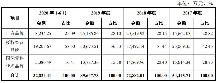 从1995年开始,嘉曼服饰就推出自有品牌“水孩子”,目前,水孩子在中国童装行业市场率排第七位。招股书显示,2017年-2021年上半年,嘉曼服饰自有品牌销售金额分别为1.57亿元、2.05亿元、2.52亿元、0.82亿元,占比分别为28.82%、28.15%、28.10%、25.09%,在营收中的地位逐年下降。