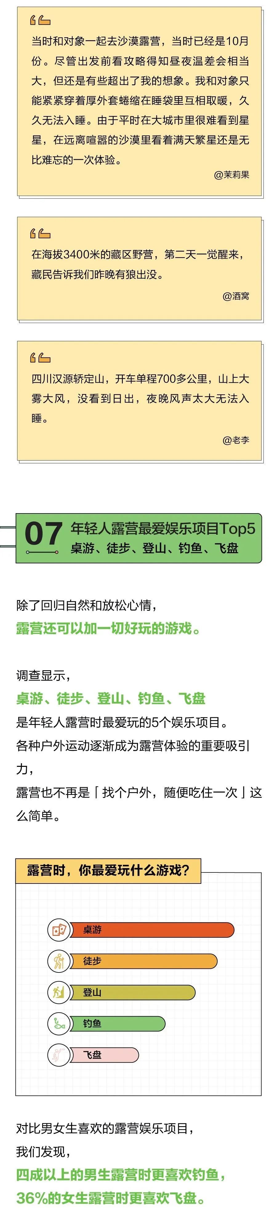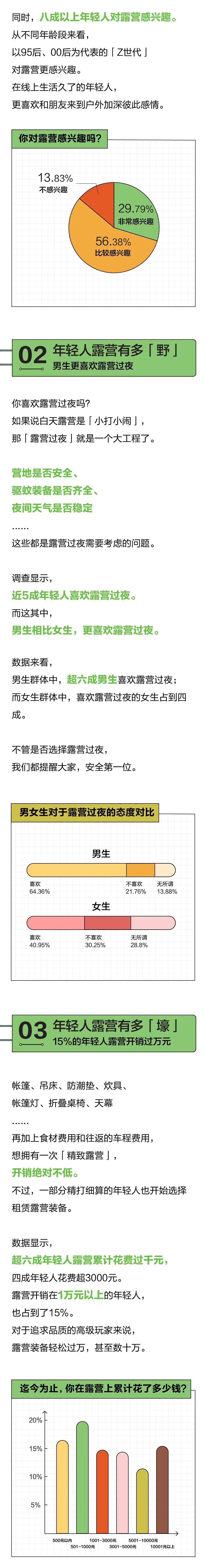 2022年轻人露营报告:6成男生喜欢露营过夜,3成女生表示拒绝