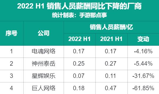在这11家厂商提升销售人员薪酬的同时,神州泰岳、巨人网络、电魂网络与星辉娱乐这4家厂商却降低了销售人员的报酬,或许是由产品储备,及公司营收两个维度共同作用的结果。