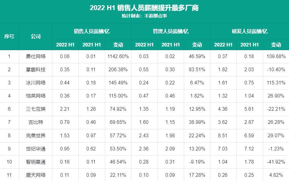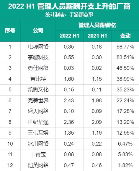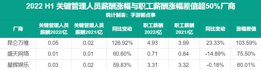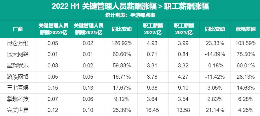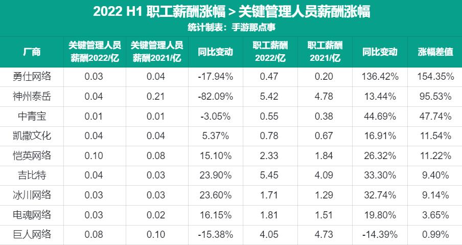 而勇仕网络、凯撒文化、恺英网络等厂商职工薪酬涨幅也均比关键管理人员薪酬涨幅高出10个百分点。