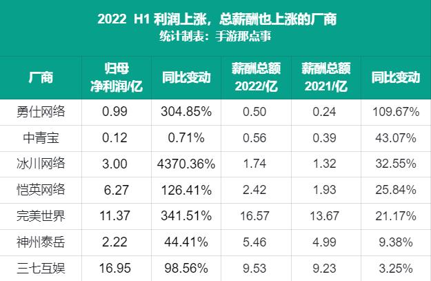 此外,上半年凭借《幻塔》利润翻近3.5倍的完美世界,以及游戏业务营收与归母净利润均实现翻倍增长的恺英网络也增加了薪酬支出,两家厂商的提升幅度均在20%以上。