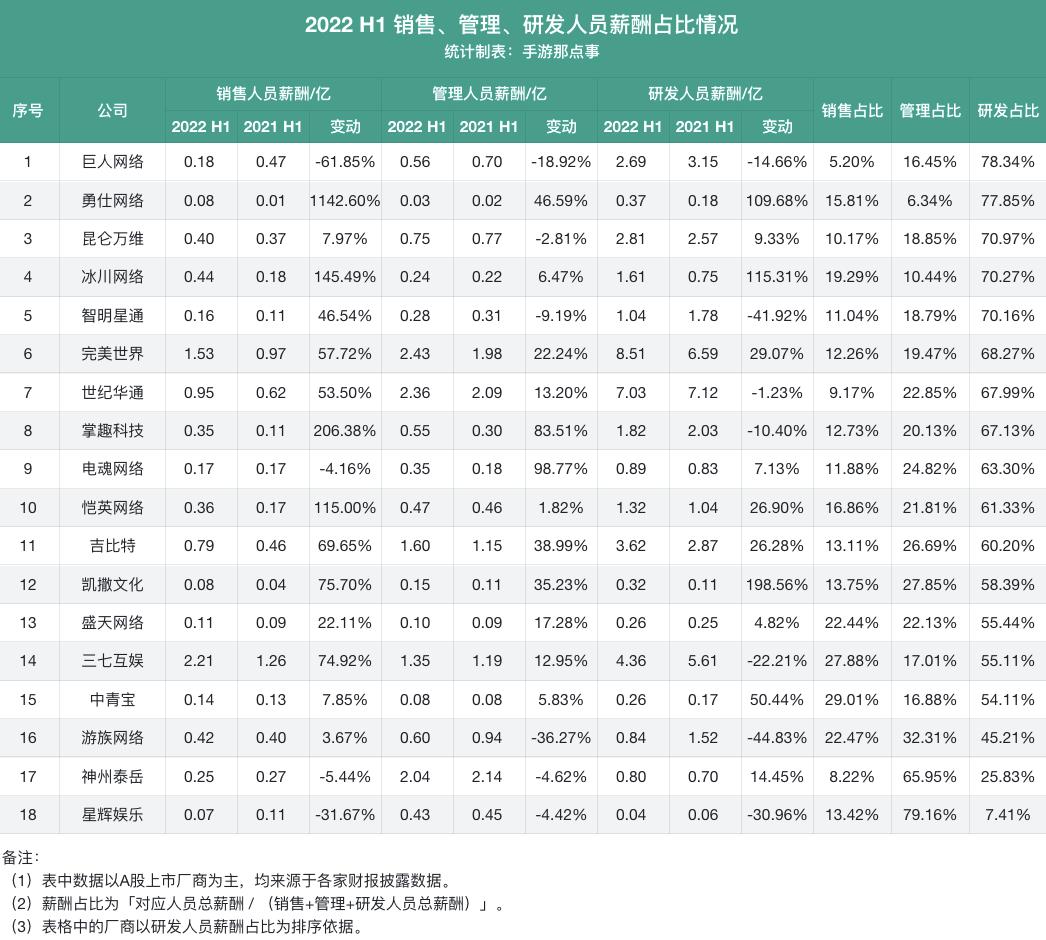 当然,也有两家厂商在薪酬的分配上做出了与众不同的选择,神州泰岳与星辉娱乐将管理人员的薪酬作为大头,且分别占比超过60%。