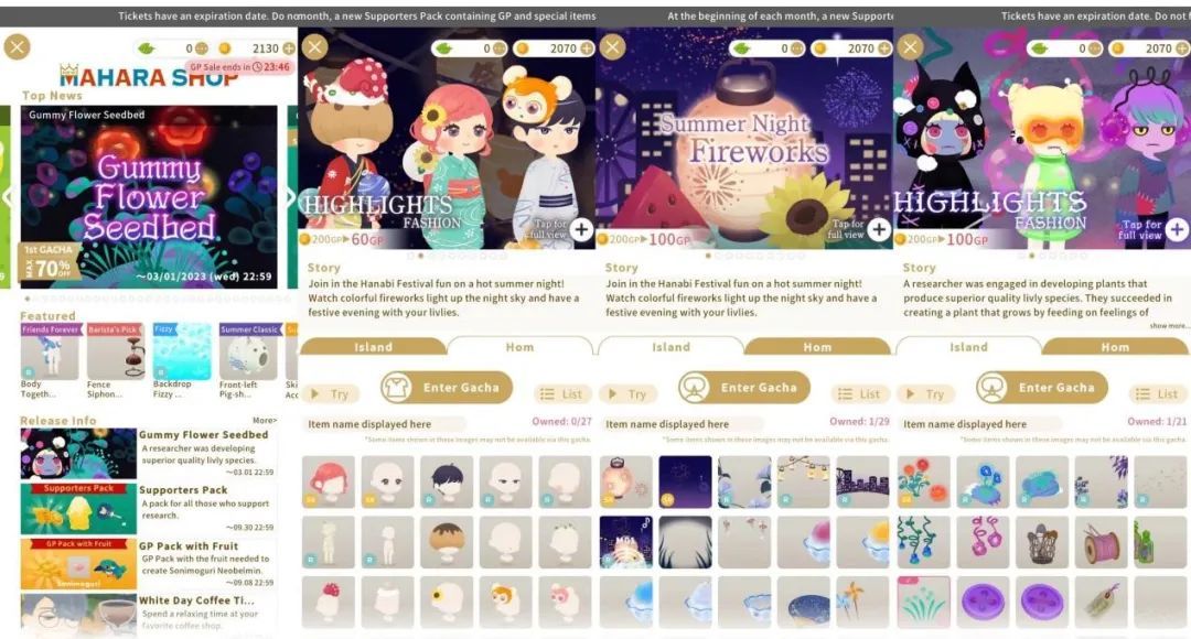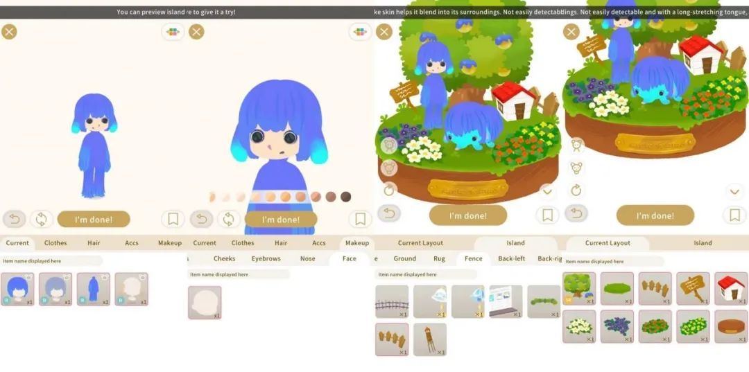而尽管初始化选择不多,但用户参与平台活动、从马哈拉商店购买或者从黑市中都可以获得更多素材,从笔者观察来看,Livly Island 在商店中提供的种类十分丰富且具有创造性。