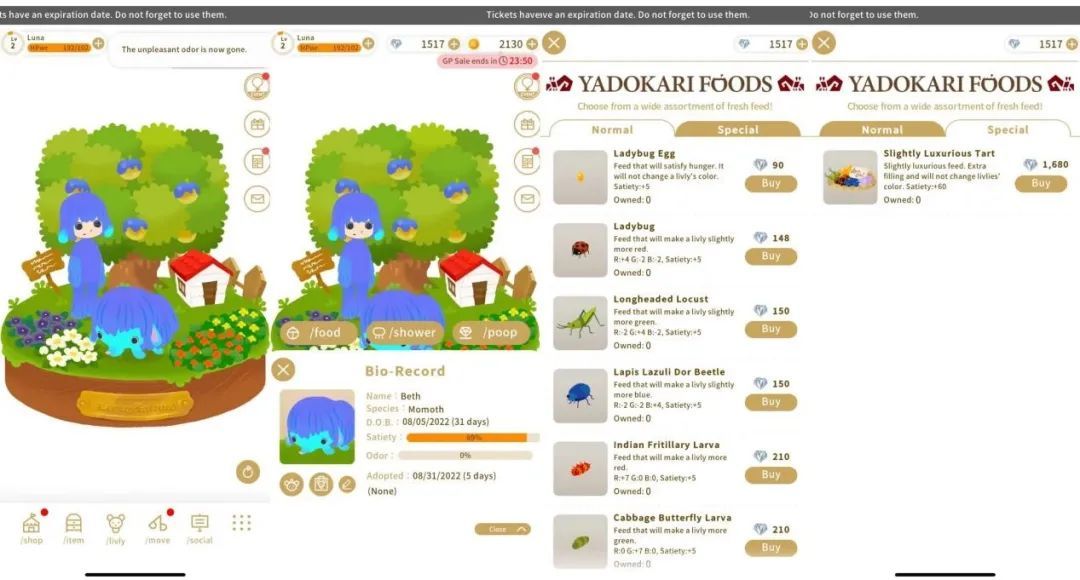 另外,Livly 排出的便便是钻石,而钻石同样可以用于购买昆虫或者用于兑换装扮。