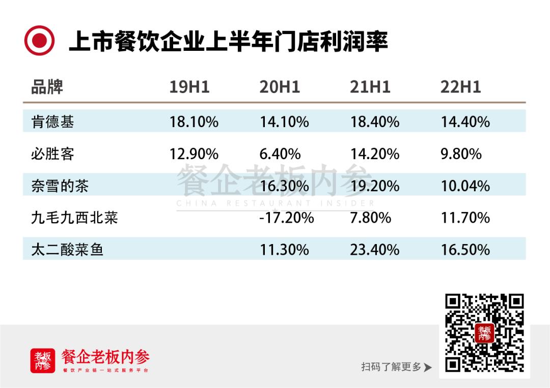 从门店利润率看,在披露的公司中,除九毛九西北菜外,门店经营利润率均大幅度下滑。