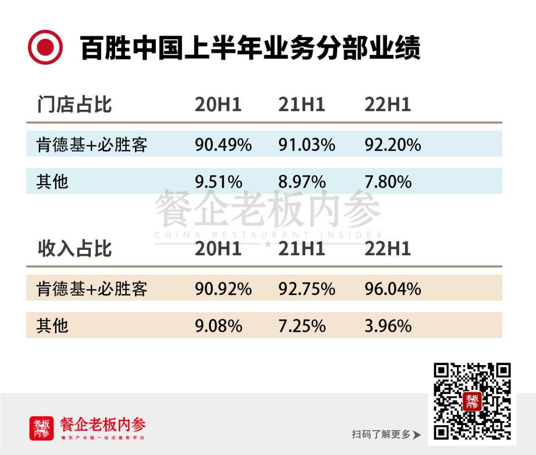 在疫情下,肯德基和必胜客仍然是开店主力,门店占比从90.49%提升到92.2%,相对应的,收入占比也从90.92% 上升至96.04%。