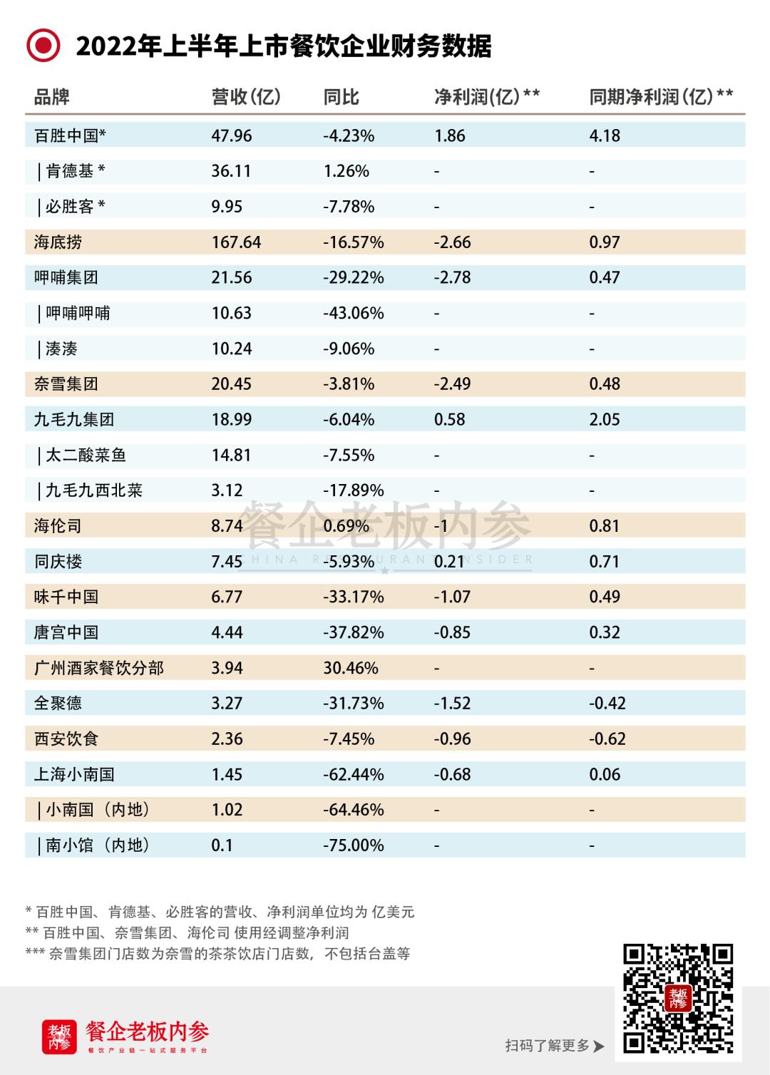 今年上半年保持营收同比增长的公司,仅有肯德基、海伦司和广州酒家。