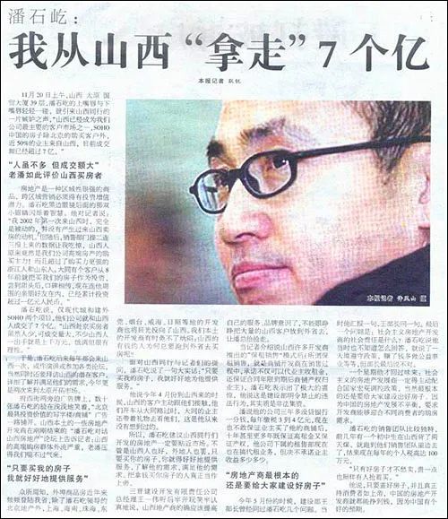 [1]《潘石屹成煤老板偶像 据称买房过亿可与他吃饭》第一财经日报 2013-02
