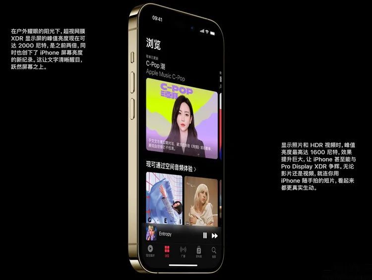 除此之外,iPhone 14 Pro与iPhone 14 Pro Max则配备了更高端的屏幕、更强大的性能,以及全新设计的相机模组。而在介绍它们的屏幕时,苹果方面很明确地给出了这块屏幕两种场景下的亮度,即播放HDR内容时1600nit,以及在室外强光下最高可达2000nit。
