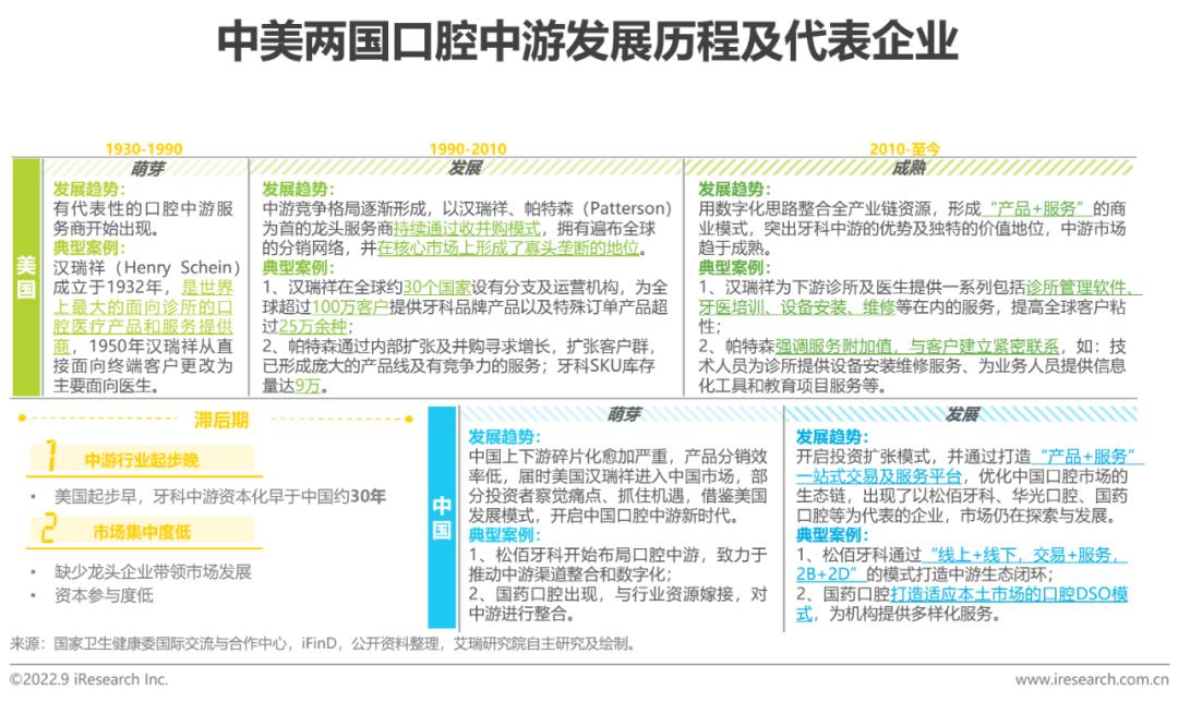 口腔中游传统线下经销商小而散、且服务质量参差不齐,已越来越难满足上下游日益增长的一站式产品和服务需求,且上下游碎片化使口腔中游具有“平台化”整合能力的企业价值不断凸显,中游渠道整合为大势所趋。近年来,综合性口腔服务平台等新型渠道商将数字化引入中游,针对上下游存在的产品信息透明度、诊所运营管理、牙科从业资源等问题,采用科技手段整合全渠道资源、帮助传统诊所转型、为牙医提供培训教育及先进技术,利用数字化服务体系助力口腔全行业。