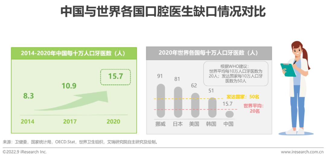 尽管牙医增速高于行业平均水平,但牙医供给仍旧不足
