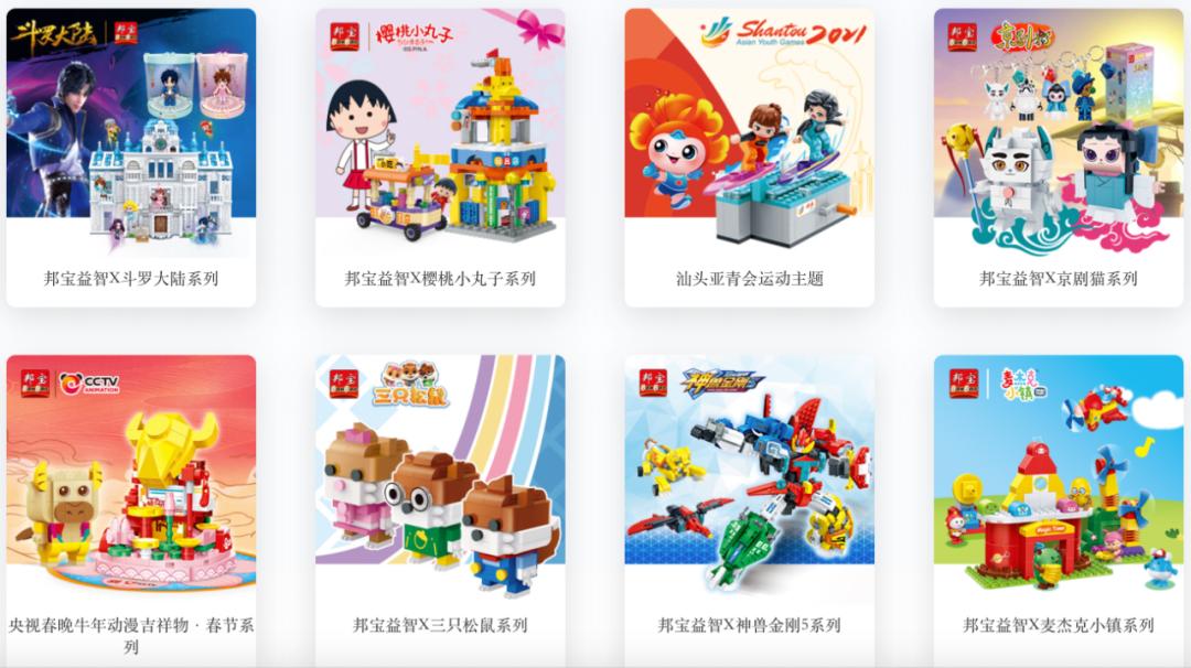 动漫IP类玩具以品牌“奥迪双钻”为主,涉及“超级飞侠”“萌鸡小队”“铠甲勇士”“巴啦啦小魔仙”“巨神战击队”等众多自有IP,品类玩具以积木类产品为主,公司旗下“维思积木”品牌主打中颗粒和小颗粒产品;潮玩手办方面则通过旗下“玩点无限”品牌切入市场。