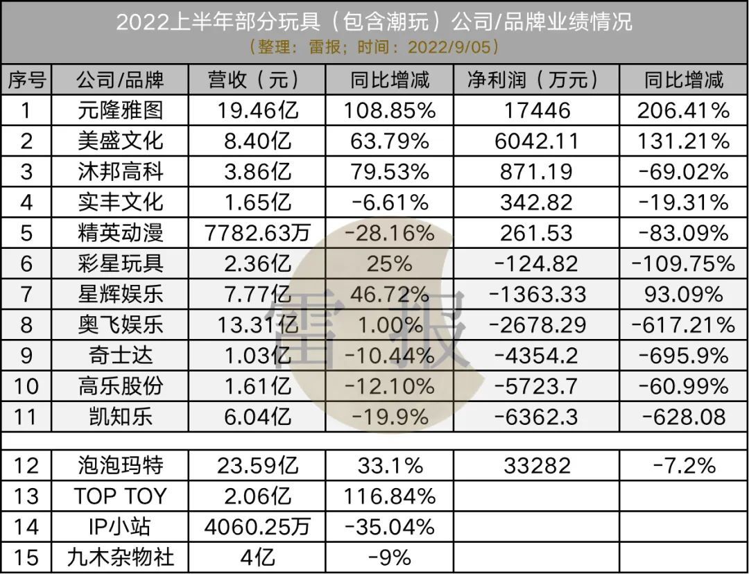 15家玩具、潮玩公司/品牌中,7家营收同比下滑,至少9家净利润同比下降。