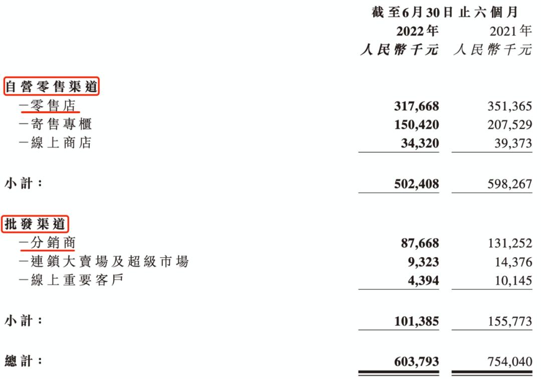 批发渠道方面,上半年,凯知乐新增分销商42家,分销协议届满不予重续48家,截至2022年6月30日,分销商数量为515家(去年同期578家);与12家连锁大卖场及超级市场订有批发安排;线上重要客户5家,去年同期为6家。
