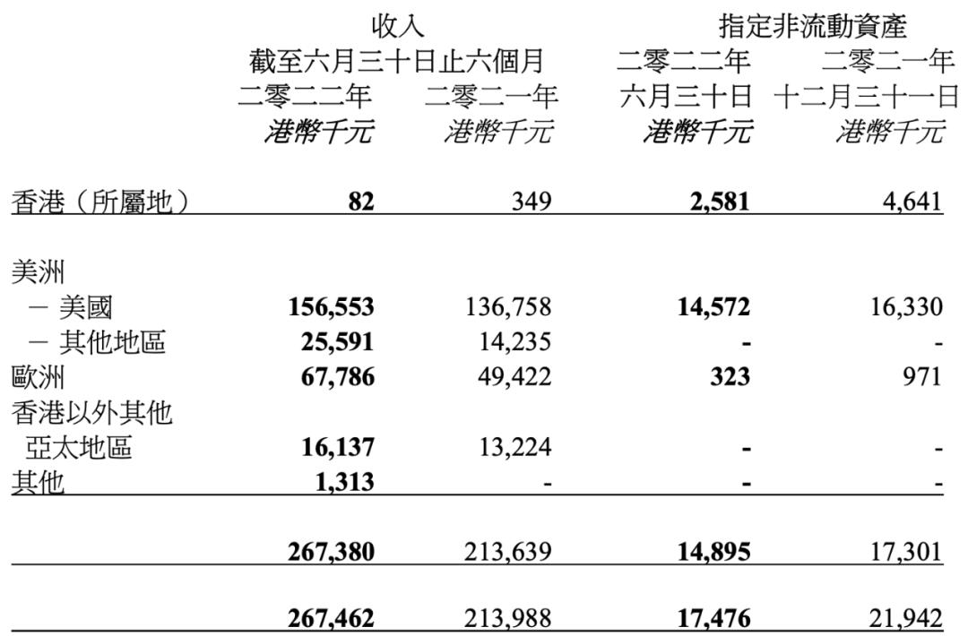彩星玩具的收入主要来自美洲及欧洲,上半年美国地区收入为1.57亿港元,欧洲地区收入为6778.6万港元。亚太地区营收为1613.7万港元。