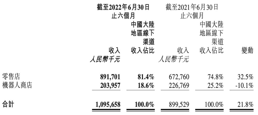 2022上半年,泡泡玛特中国大陆地区“线下渠道收入”同比增长21.8%至10.96亿元,其中零售店收入同比增长32.5%至8.92亿元;机器人商店销售收入同比下降10.1%至2.04亿元。