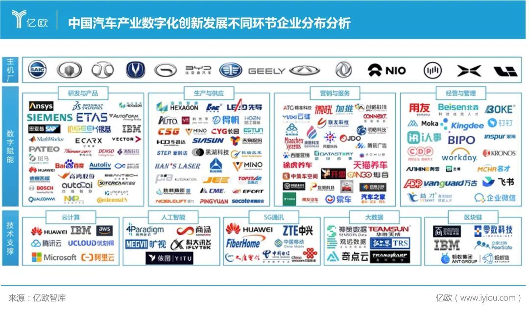 而在整个汽车产业数字化转型过程中,也涌现出了众多以解决方案或者服务能力支撑作为数字驱动赋能的优秀企业,如微软、华为、得帆科技、思爱普SAP、银基、百度、易车、黑湖科技等。