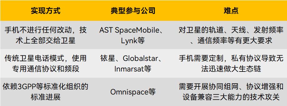 让手机直连卫星,主要有三条技术路线,每一条路都存在自己的难点,同时还要面对四个关键问题:
