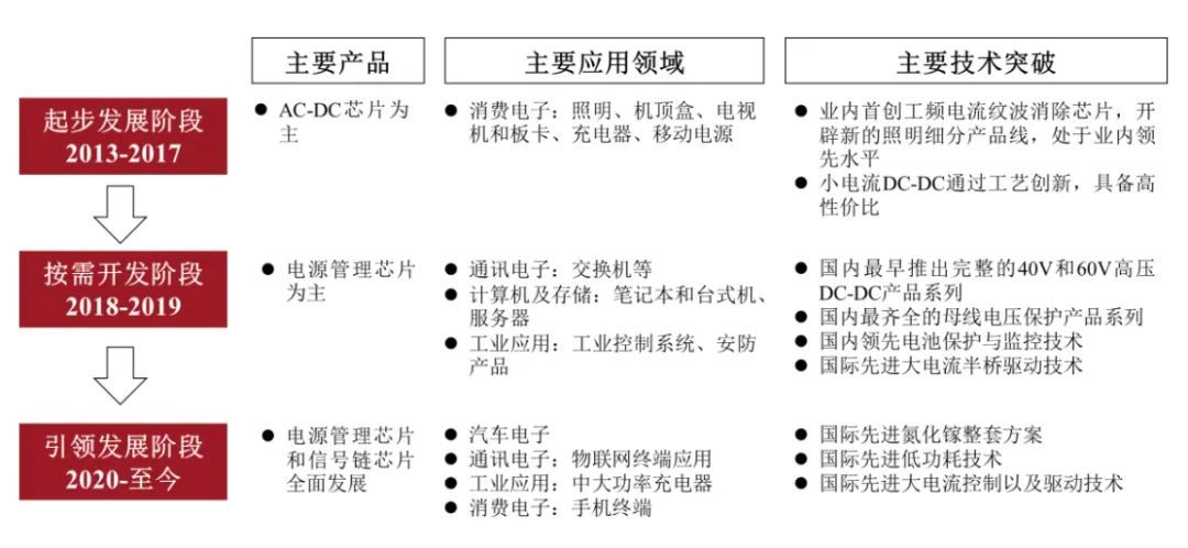 “公司进一步拓展产品应用领域,产品逐步布局于中大功率充电器、物联网终端、光通信、手机终端、汽车电子等领域。”杰华特在招股书中提及。