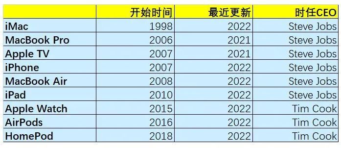 此时此刻,苹果运营着9个主要的硬件产品线(不含刚刚停止更新的iPod)。其中,有六个是乔布斯担任CEO期间推出的,仅有三个是库克继任CEO之后推出的。库克推出的三个新产品是Apple Watch、AirPods和HomePod(含HomePod Mini);上个季度,这三条产品线加起来对苹果营业收入的贡献也低于10%。