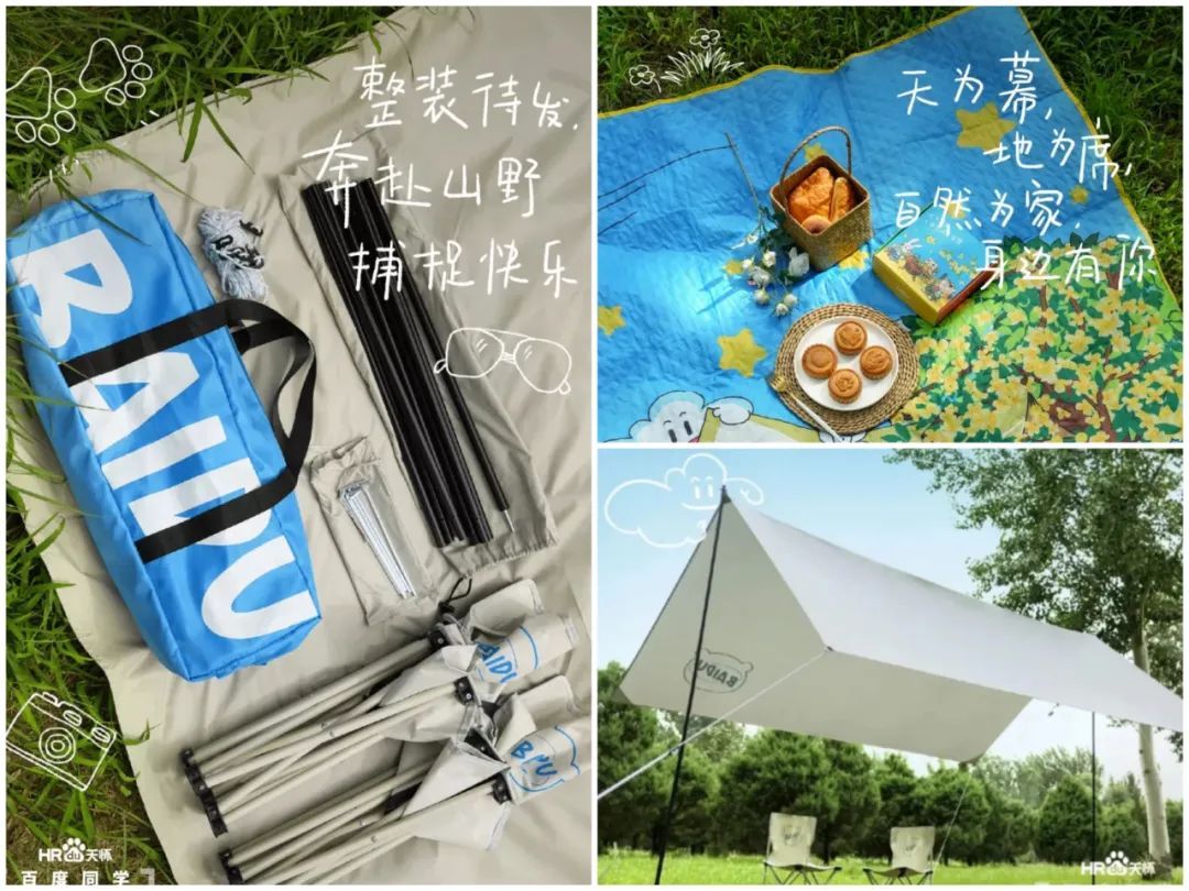 除了定制月饼,还有天幕、折叠椅、野餐垫、手提包等,几乎都是出门露营所需的必备用品,讲究的就是一个实在。