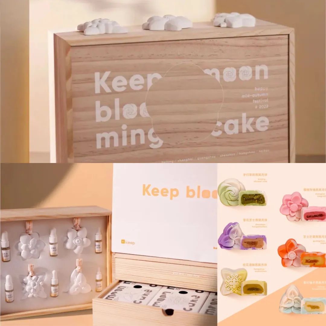 Keep今年中秋礼盒主题为“Keep blooming”,寓意Keep六大职场城市共团圆、自然生长,朵朵花开组成缤纷世界,香薰配月饼,仙气的不行。
