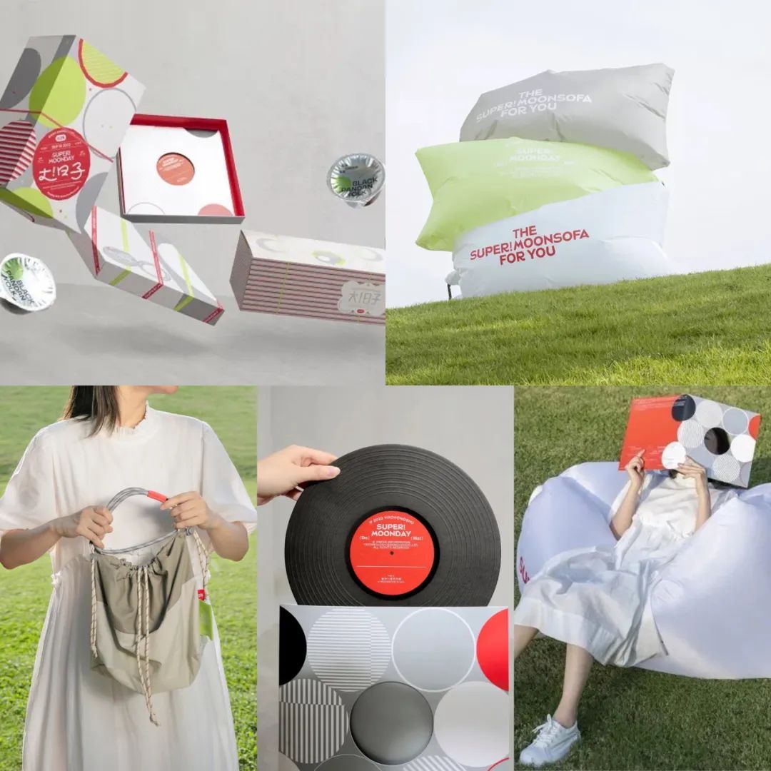 6枚月饼、一本音乐唱片、一个户外充气沙发、一个户外包组成了今年氛围感拉满的户外中秋大礼包。