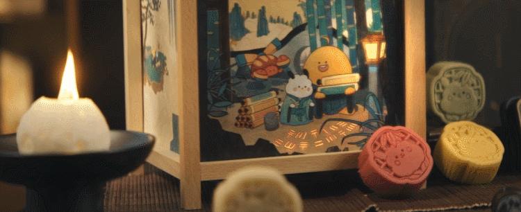 原木故事灯面以祖冲之为故事原型,描绘了古人观景测月的情景。礼盒除了IP小羊驼的定制月饼以外,配置了与主题高度贴合的精美周边。