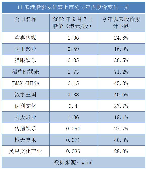 据每经记者不完全统计,11家在港股上市的影视传媒公司年内股价均呈现累计下跌之势。