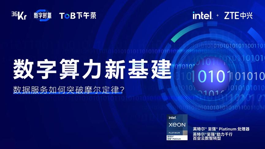 在9月15日即将举行的「数字算力新基建——数据服务如何突破摩尔定律?」To B下午茶活动中,36氪「数字时氪」将邀请IT基础设施建设者英特尔、中兴通讯、To B 企业相关负责人、数字化转型一线从业者、学者、投资人和分析师等群体代表,通过对数字化转型跨界视角的趋势分享、案例解读和难点剖析,共同探讨中国数字化发展的时代命题。活动详情如下: