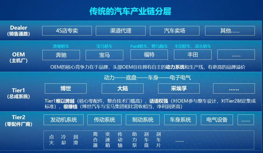 上述事实代表着汽车行业正在发生一个根本性的转变,与传统汽车供应链等级森严的格局相比,在新的汽车供应链中,车企的参与度越来越深,供应链越来越扁平化。
