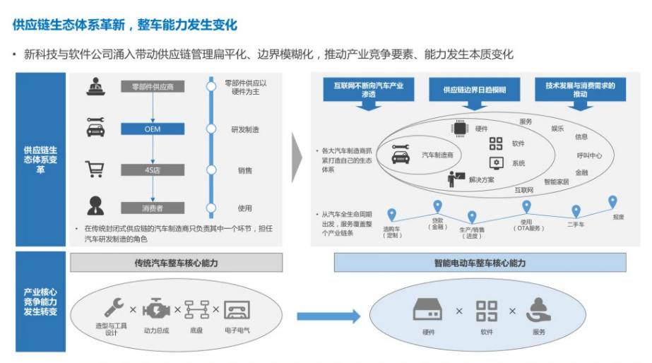 (图源:盖世汽车研究院)汽车产业链变革趋势下,整车能力向软件靠拢