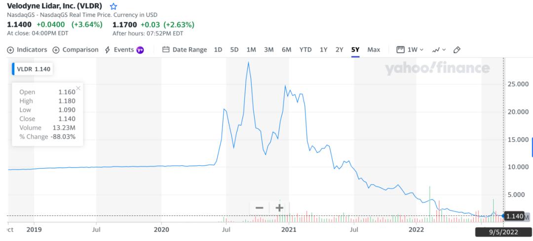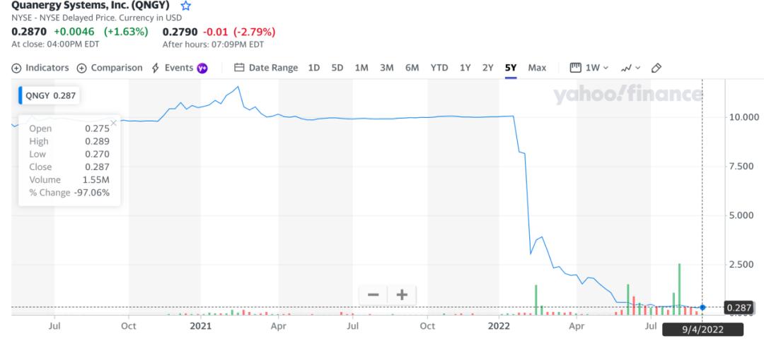 Quanergy是一家成立于2012年的加州初创公司,通过为汽车行业开发世界上第一个光学相控阵 (OPA) 3D 激光雷达而声名鹊起。2021年,Quanergy也通过SPAC合并上市,于今年2月在纽约证券交易所开始交易,Quanerg的股价也是一落千丈,不足1美元。2021 年,该公司公布的销售额为390万美元,净亏损6400万美元,亏损数字反映了高额的运营费用,以及利息偿还的急剧增加。2022年8月,Quanergy宣布,收到Prime Secured的数百万美元订单。