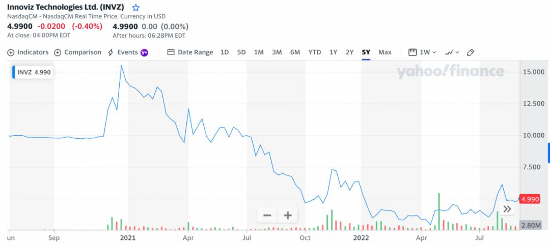 成立于2016年的以色列初创公司Innoviz定位为汽车级基于MEMS的激光雷达模块。2021年4月,Innoviz通过SPAC合并上市,Innoviz 4.9美元的股价算是一众上市激光雷达企业中股价较好的企业。2021年,Innoviz实现营收550万美元,2021年的研发费用约为9330万美元。不过,Innoviz对其发展前景非常看好,已将其前瞻性订单增加到2.6B美元,