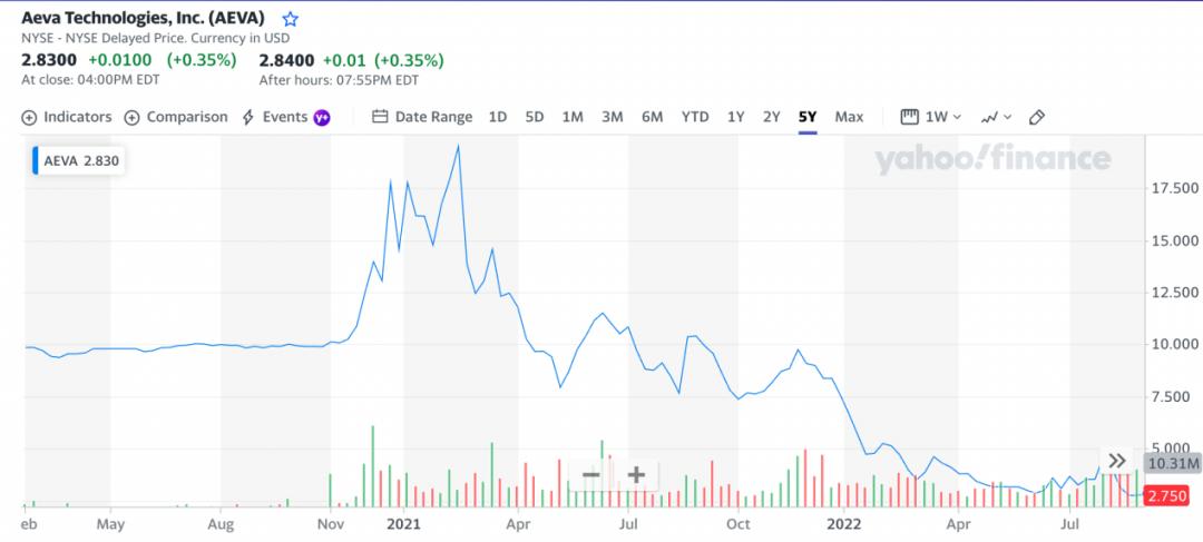 成立于2017年的Aeva由前苹果公司高管创立,总部位于美国加州山景城。Aeva主要为自动驾驶汽车及其他领域开发FMCW激光雷达技术,据其称,他们拥有业内同行中最大的FMCW LiDAR专利组合,新发布的Aeries II是世界上首款商用的4D激光雷达。但其芯片的生产预计要到2024年才能开始。2021年3月,其通过SPAC合并上市,目前股价为2.7美元左右。2021年全年收入为930万美元,全年非GAAP运营亏损为 8190万美元。