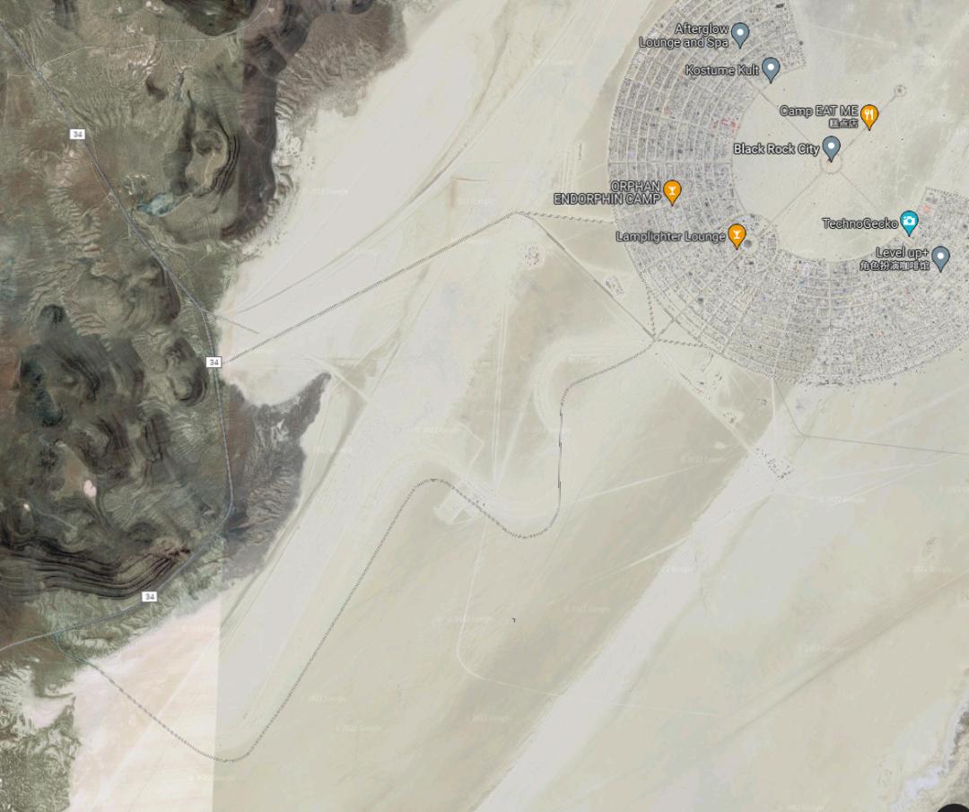 右上为营地和活动场地“黑石城”,左下为公路出口来源:Google Maps