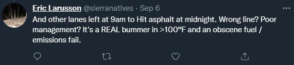 “大家都喜欢拿火人节的风格和 Mad Max 做对比。然而在一整星期里,今年的离场是最有 Mad Max 体验的……我已经等了5个小时了,还有2个小时才能开到出口大门。”